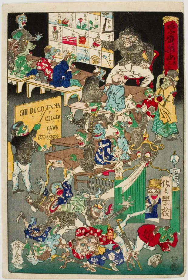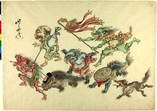 «Сёдзё» также подразумевало, что Кёсай, самый известный художник Японии XIX века, оживал только тогда, когда был пьян. Ходили слухи, что он выпивал по три бутылки сакэ каждый день к полудню, он специализировался на плотных, сногсшибательно красочных сценах с демонами и чудовищами, которых большинство из нас не осмелились бы представить себе в трезвом виде.