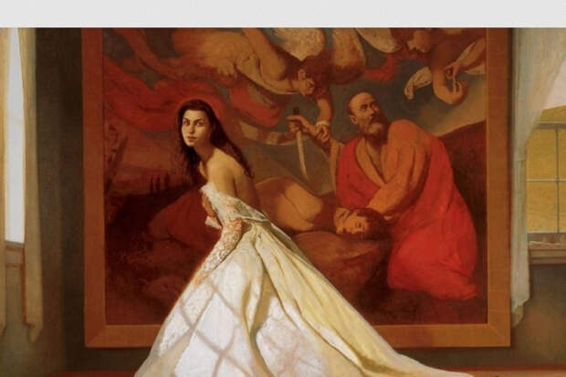 Эта композиция обыгрывает сравнение брака и жертвоприношения, и поневоле задумаешься: жертвует ли невеста собой, своим супругом или же сама свадьба – это жертвоприношение, прерванное Божьим промыслом, как в библейской истории.