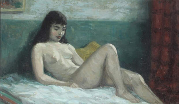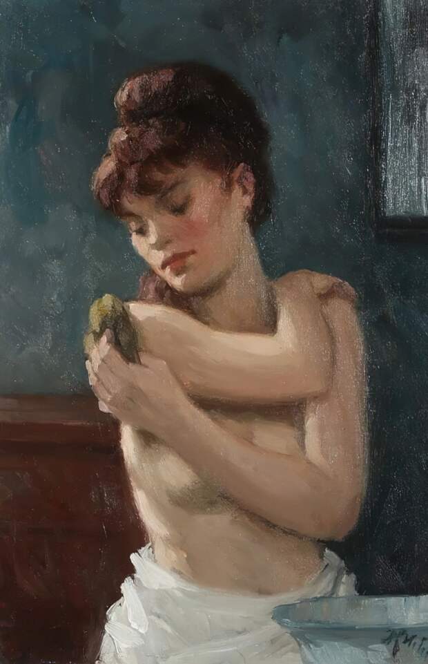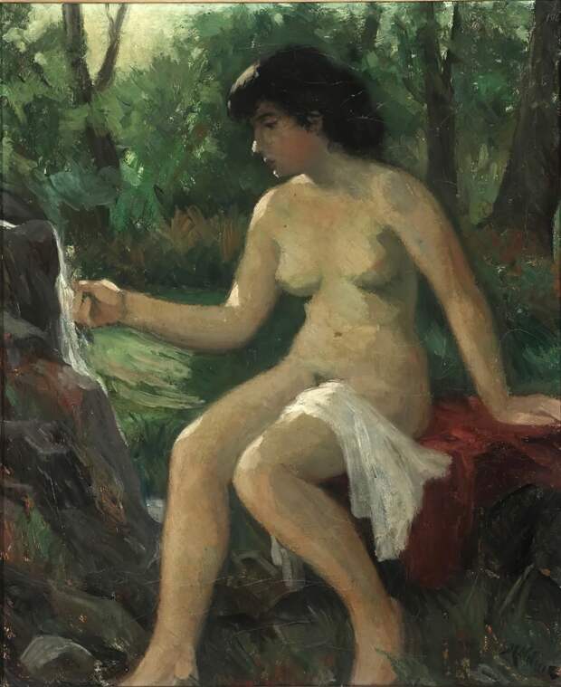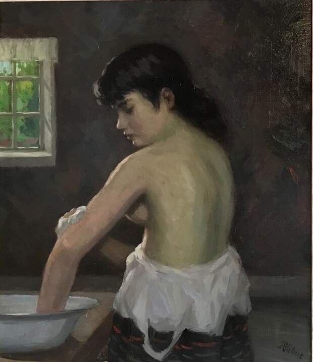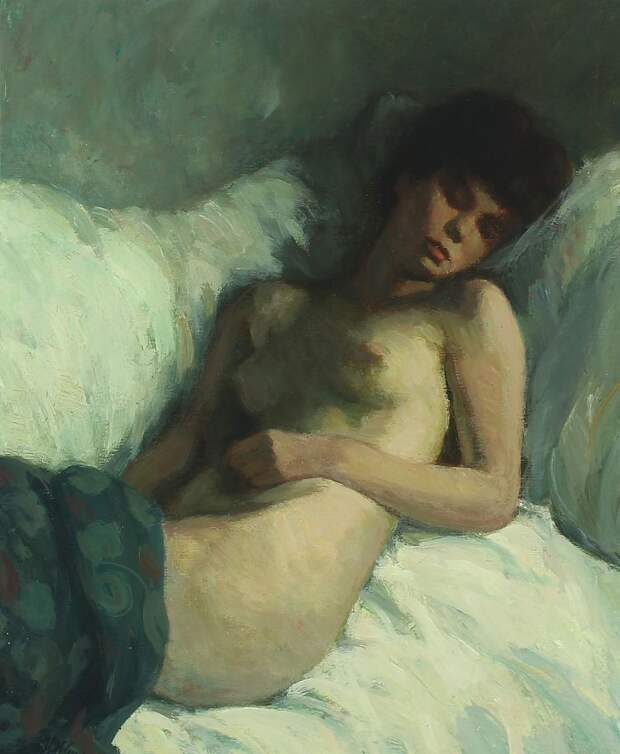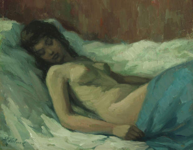 Датский художник Хельге Хельме, 1894-1987, в биографическом справочнике датских художников характеризуется так: "Хельге Хельме любил женскую красоту и сделал ее изображение своей специальностью, но иногда он также рисовал небольшие интимные "настроенческие" пейзажи и интерьеры.