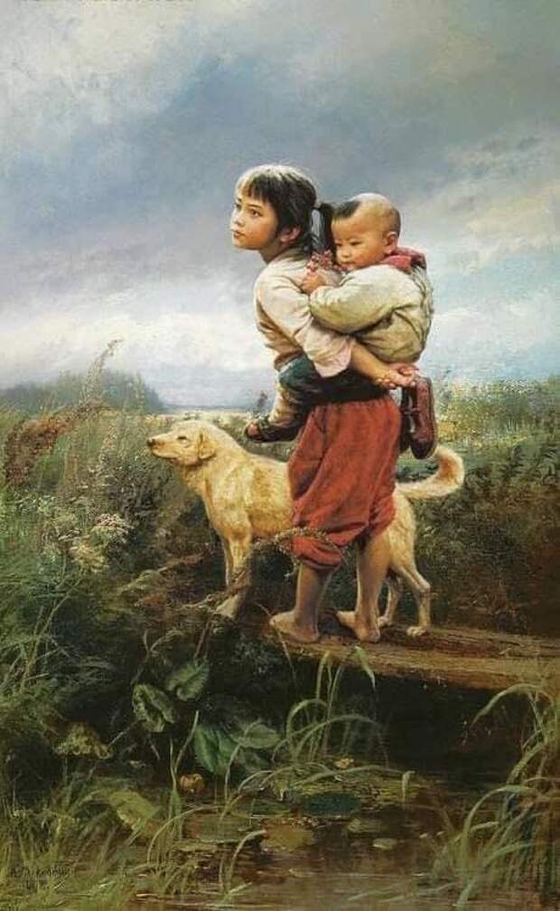 Больше всего корейскому лидеру понравились «Дети, бегущие от грозы» Константина Егоровича Маковского.